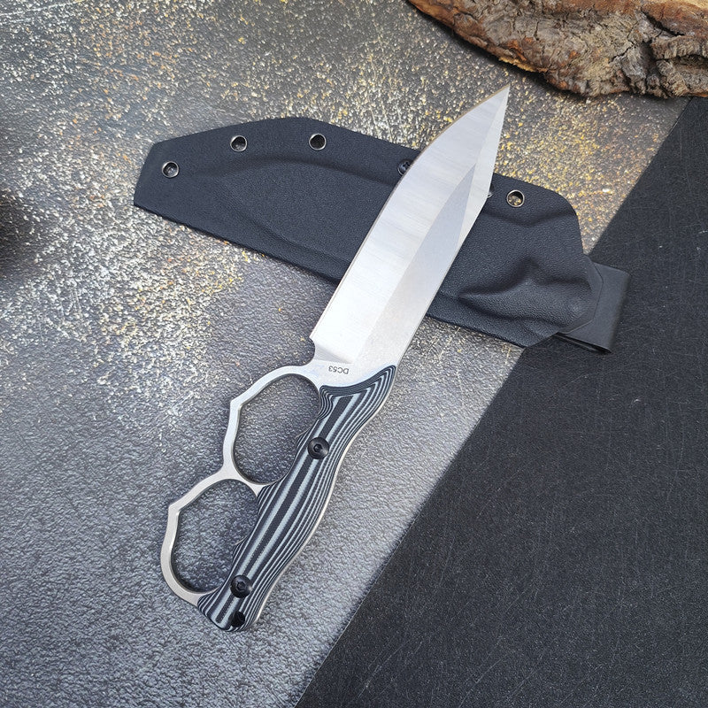Dual Heart Outdoor Knife with Knuckle Duster Self-Defense Blade