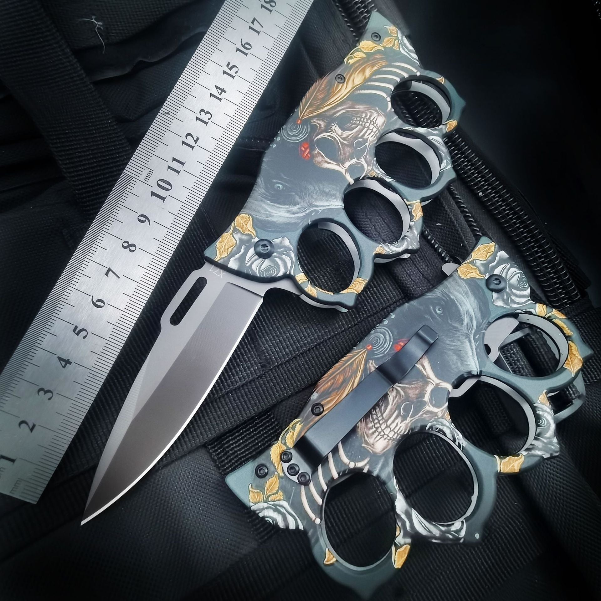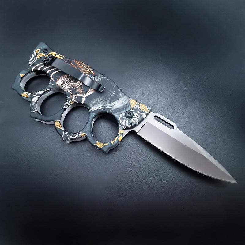Ghostly 3D Head Knuckle Duster Folding Knife