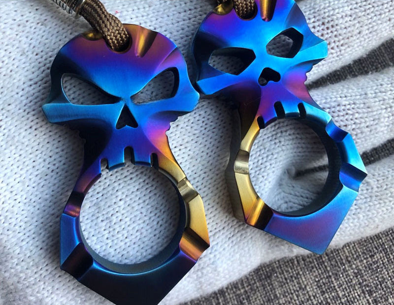 Mini Titanium Knuckle Duster Skull Portable EDC Tool Keychain